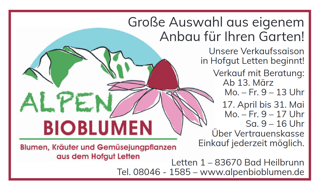 Ab 13. März öffnet Alpenbioblumen wieder die Türen für die diesjährige Saison 2023! Hier finden sie eine große Auswahl an Gemüsejungpflanzen, Kräuter und Blumen für Garten und Balkon, aus biologischem Anbau.