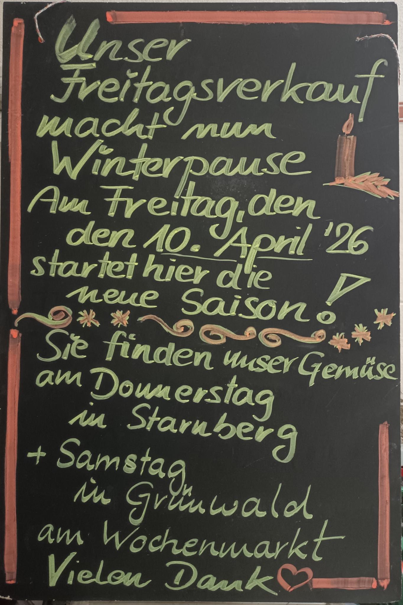 Unser Freitagsverkauf macht Winterpause. Am Freitag, den 10. April 2026 startet die neue Saison!